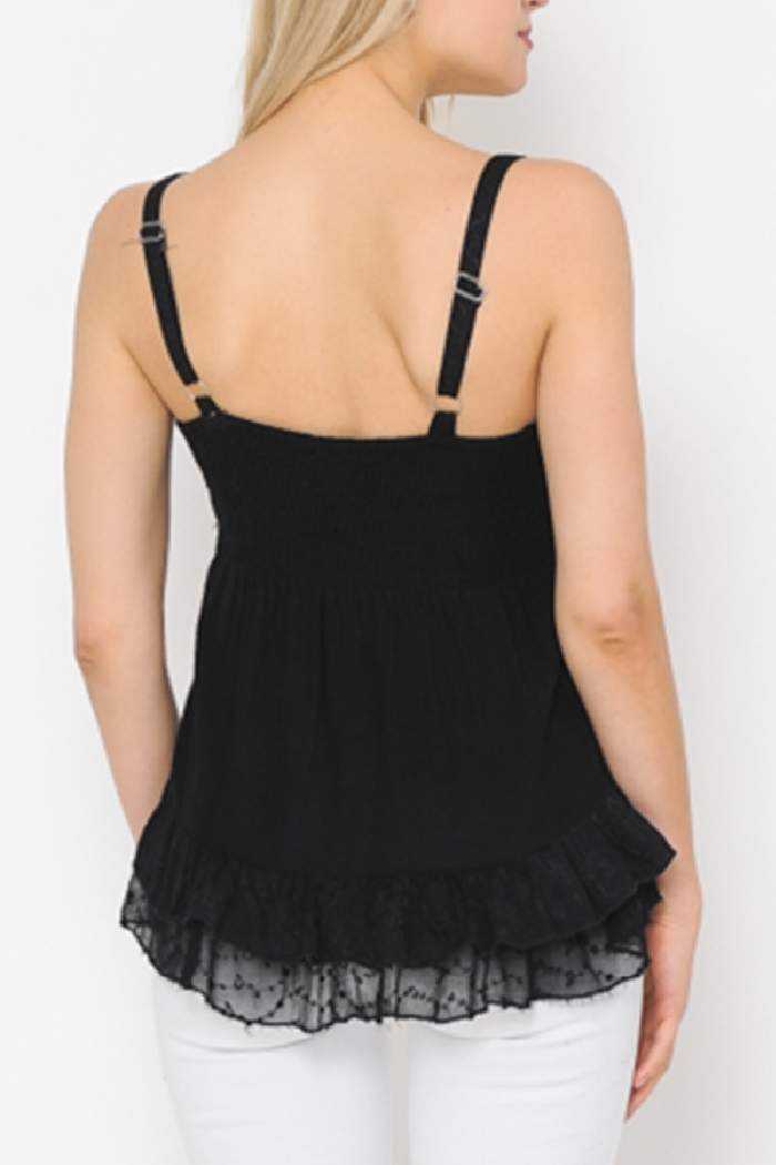 Effortless elegance meets everyday comfort in this beautifully crafted rayon tank top. Intricate embroidery graces the front, while the elasticized back yoke ensures a flattering, flexible fit. The adjustable ¾" straps offer personalized support, and the double embroidered ruffle hem adds a hint of delicate charm. Lightweight and breathable, this top transitions seamlessly from casual brunches to evening soirees.