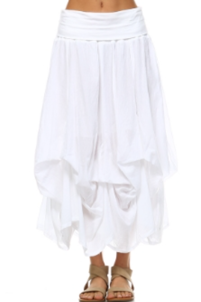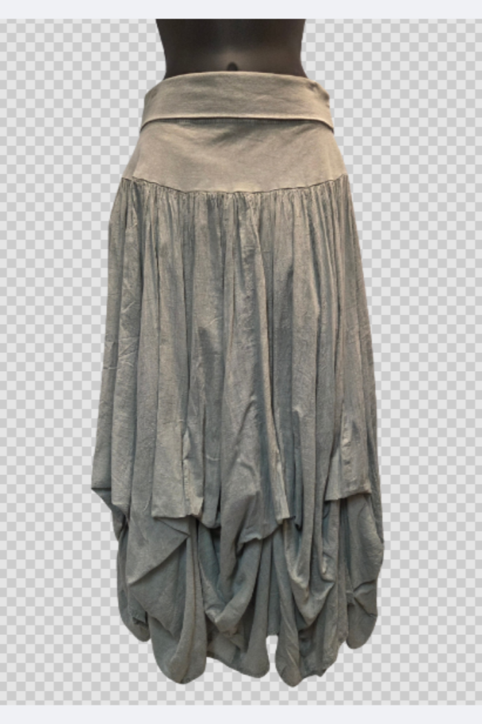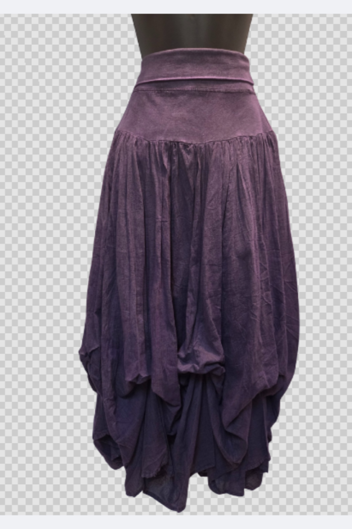 This 100% cotton bubble skirt brings a fresh twist to a classic silhouette. Designed to flare gently from the waist with a breezy, flowy hem, it features hidden ties underneath to create the signature “bubble” effect—or leave them untied for a sleeker look. The skirt is fully lined and finished with a foldover waistband for a customizable, comfortable fit. Feminine, fun, and easy to style, it’s perfect for carefree days and sunny escapes.