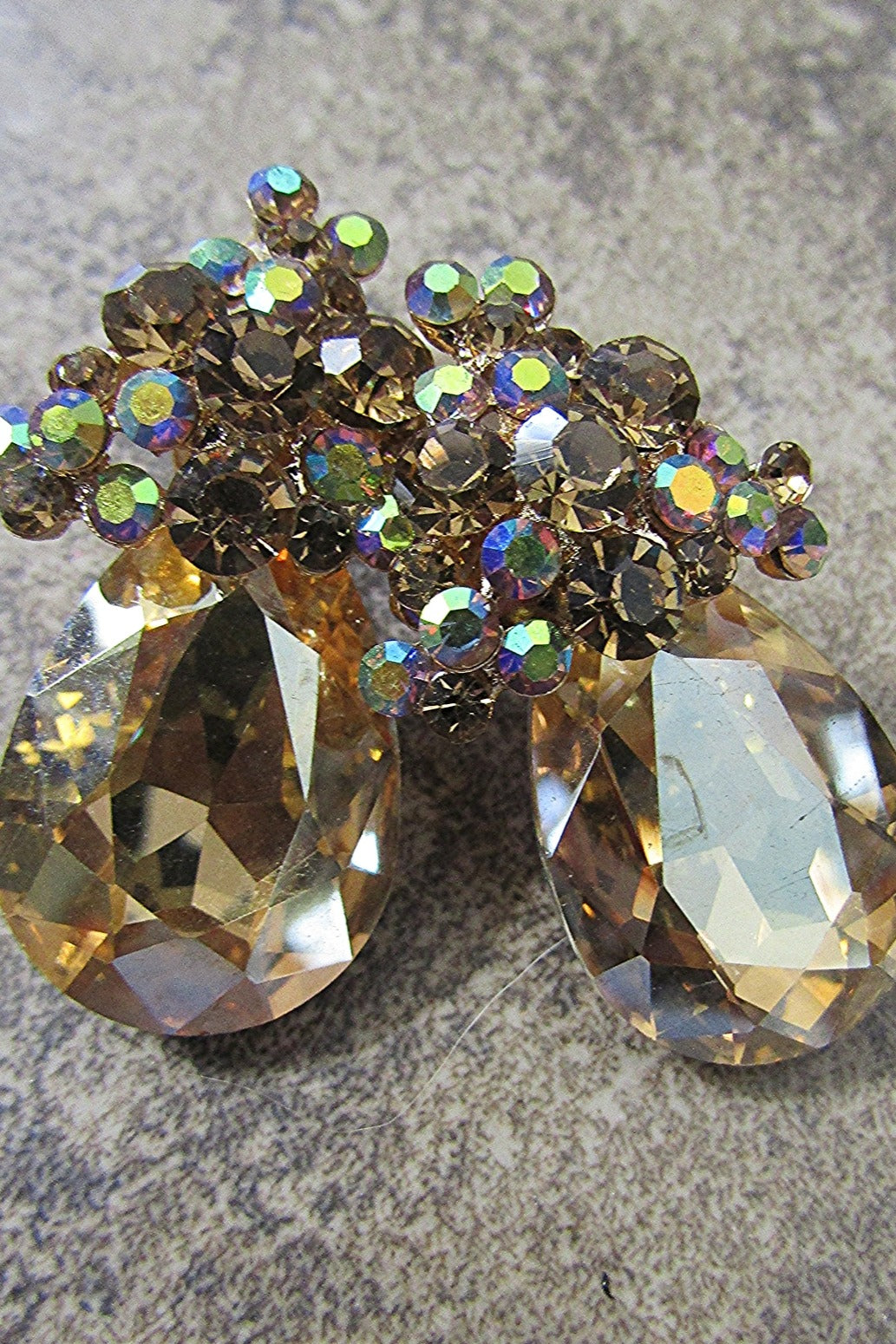 Teardrop Gem Cluster Clip Earring. Gorgeous light topaz faceted AB stones.